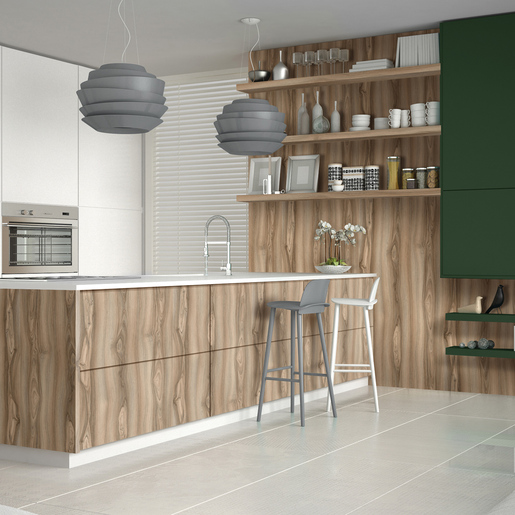 Con una combinación de tonalidades marrón claro, oscuro y avellana, este diseño de estructura Nogal con alto contraste hace remembranza al delicioso latte italiano. Las vetas y catedrales de este diseño le dan una personalidad única y natural.
